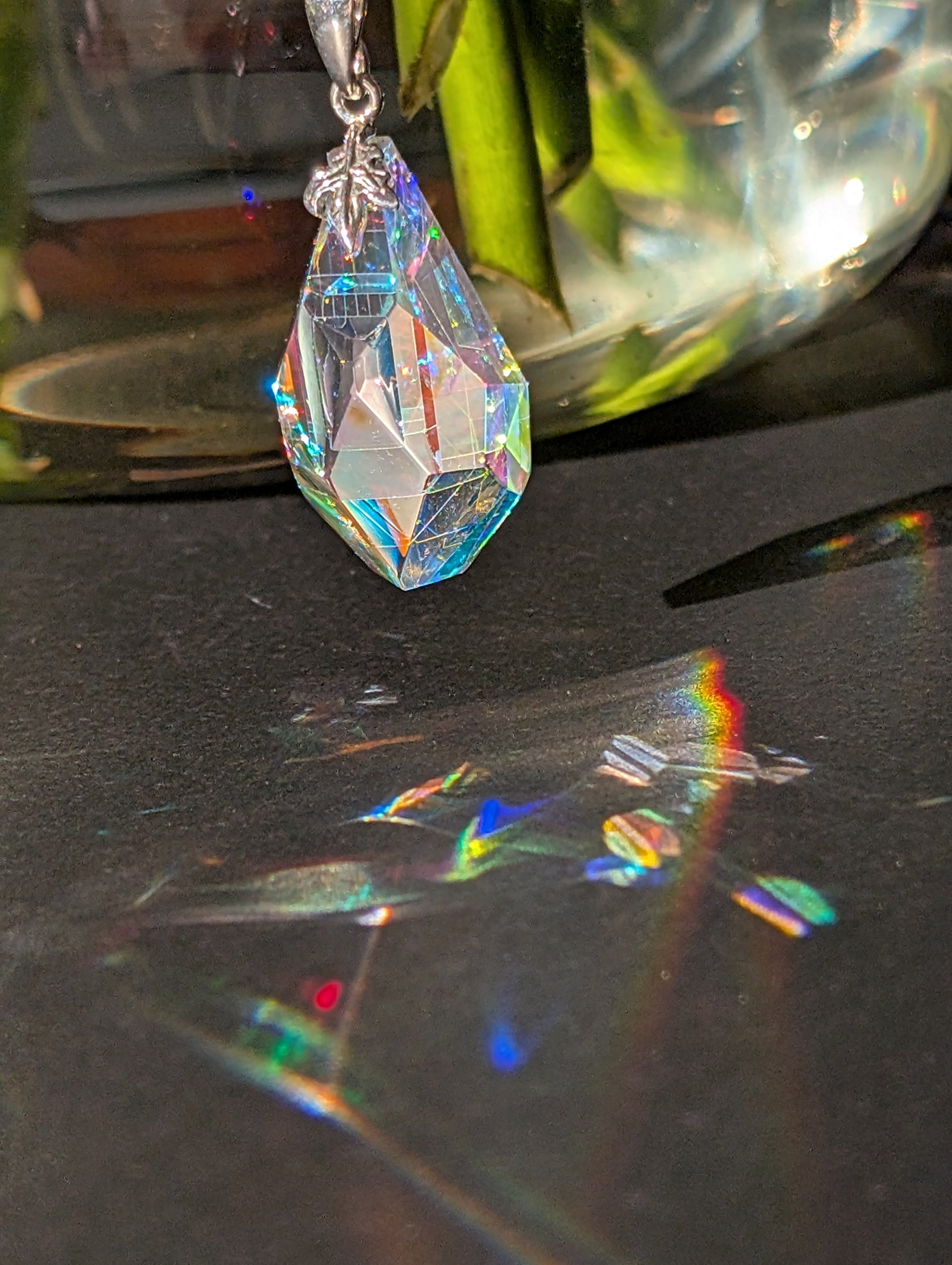 "Elinor" is more than just a pendant—it's a prism of light, a reflection of nature’s beauty, and a wearable piece of art. Whether worn as a statement piece or gifted to someone special, this pendant captures the essence of elegance and enchantment