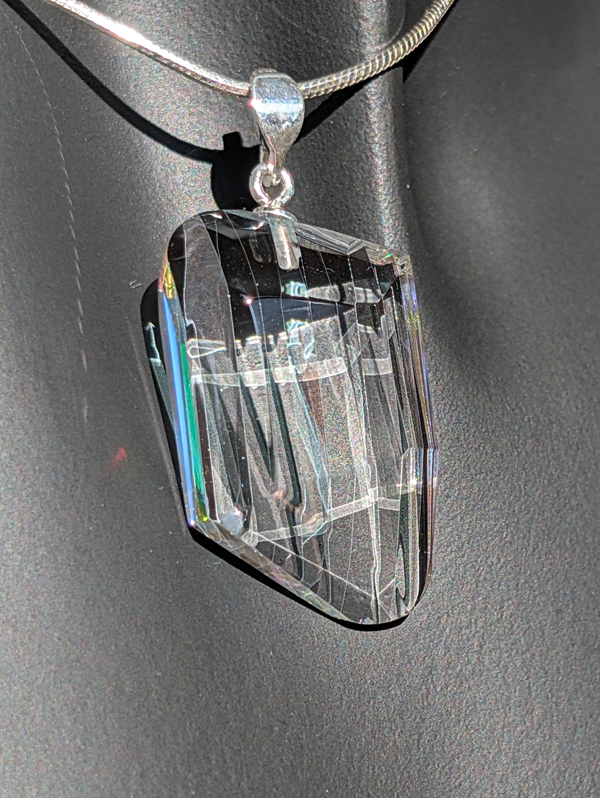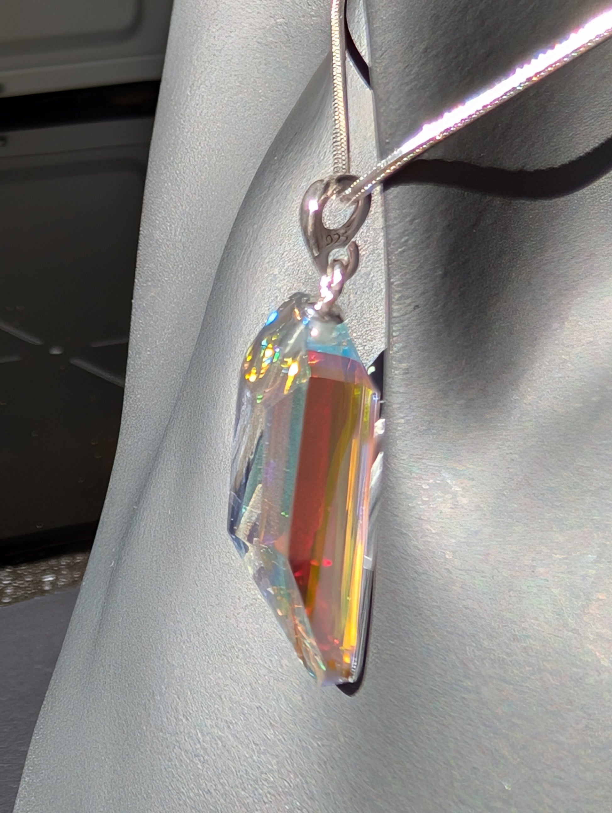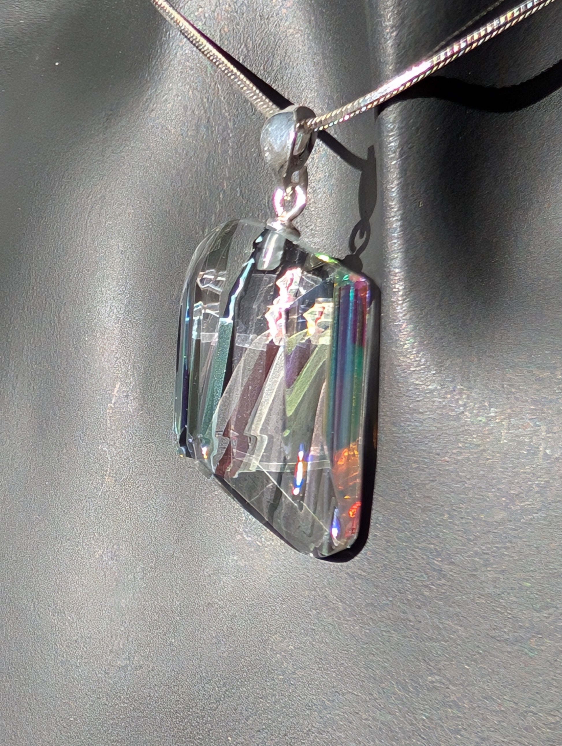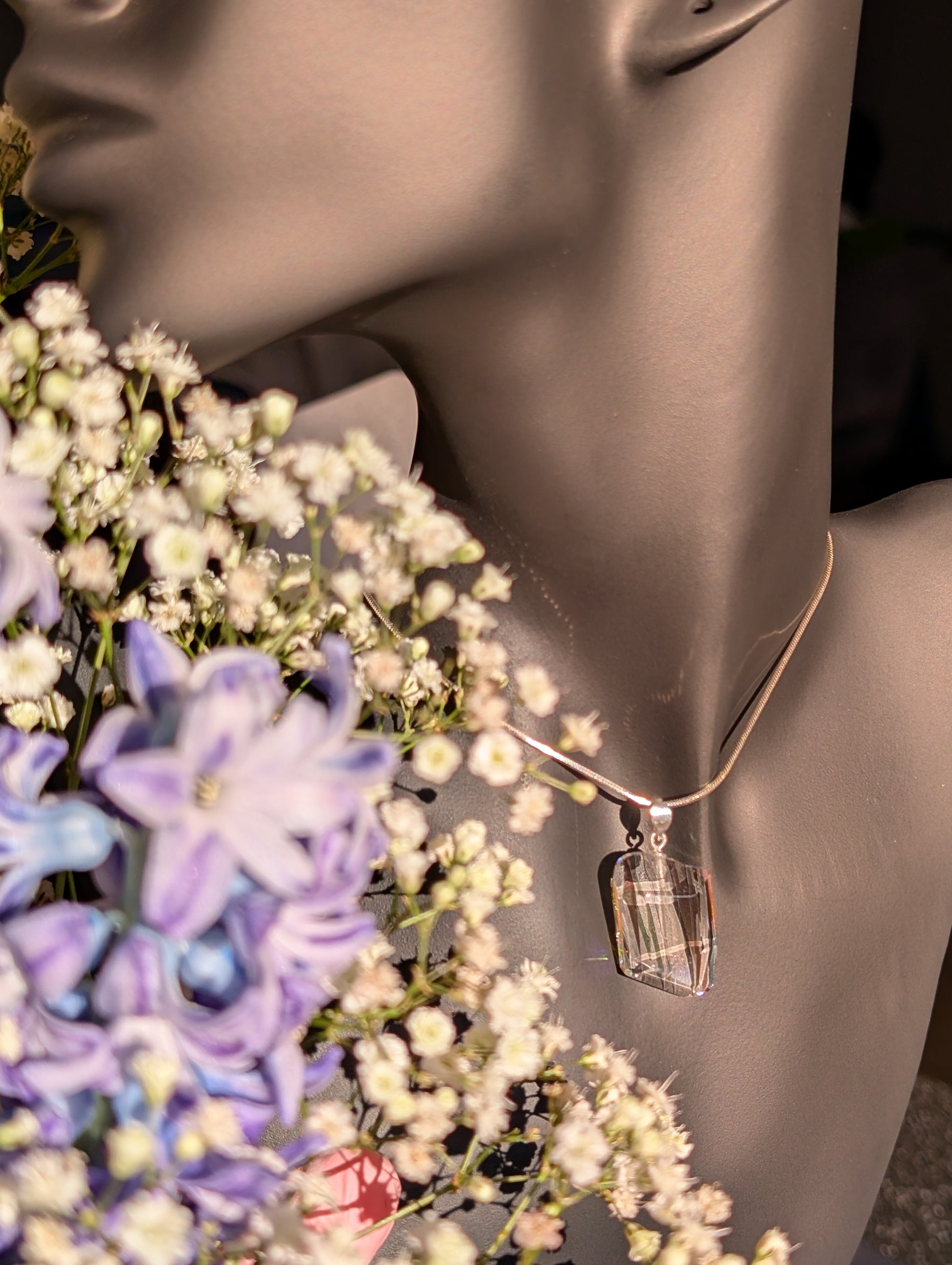 Suspended from a sterling silver (925) bail, Orit embodies a balance of structured elegance and organic movement. Its geometric yet fluid form makes it an ideal piece for those who appreciate precision in design and the ever-changing nature of light.