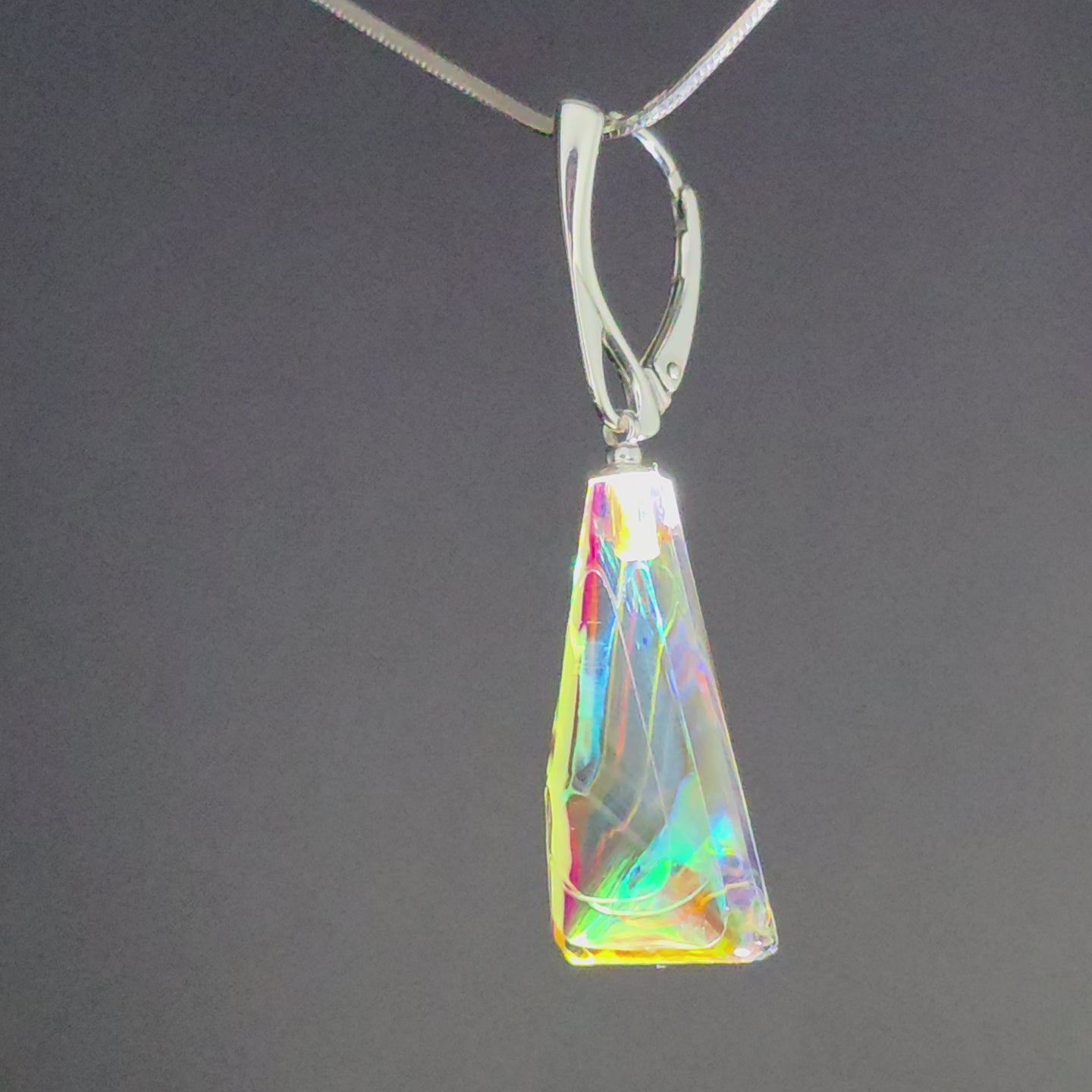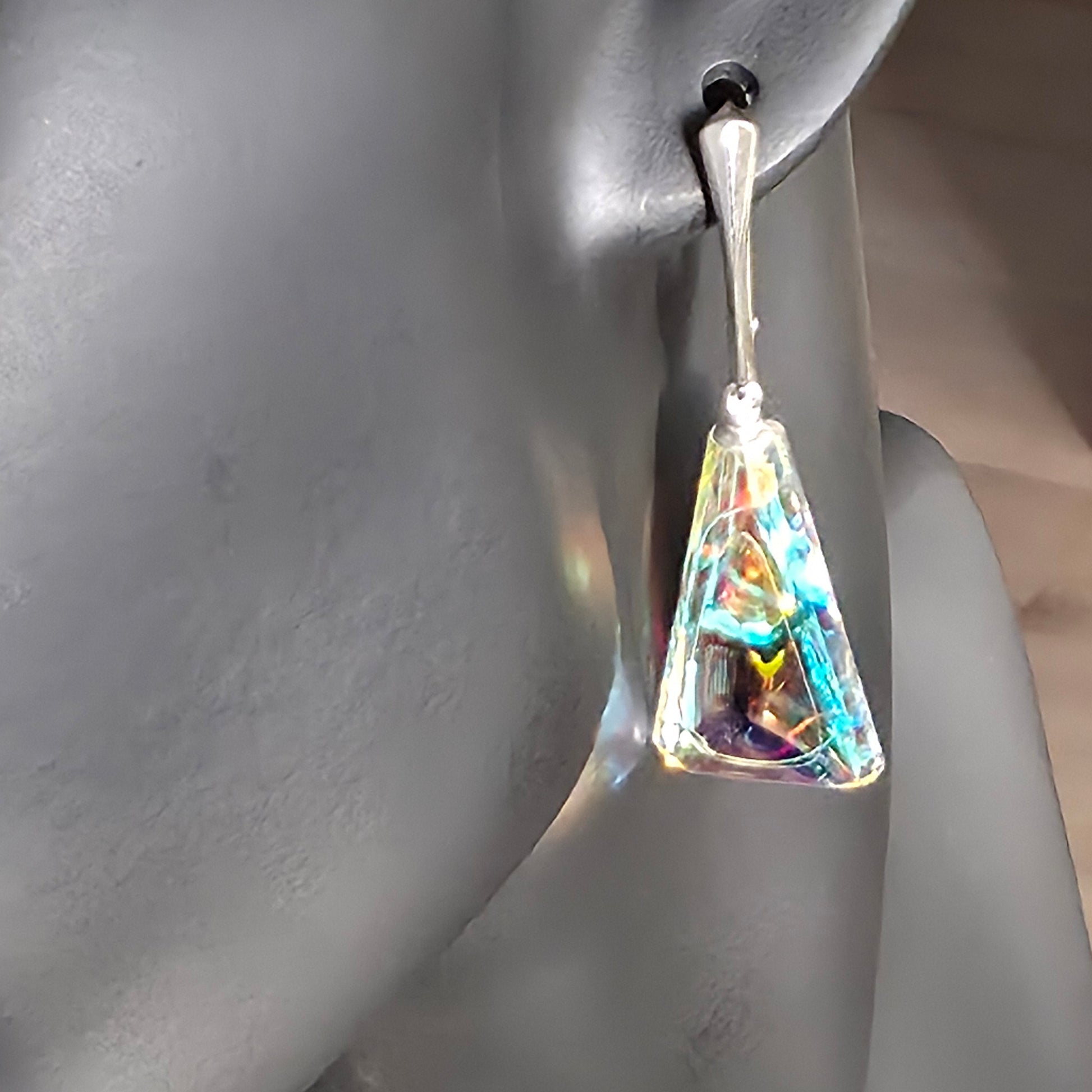The earrings and pendant share the same refined geometry, creating a harmonious, modern silhouette. Their prismatic surfaces scatter luminous reflections, making Tair a vibrant yet delicate statement—perfect worn as a set or individually.