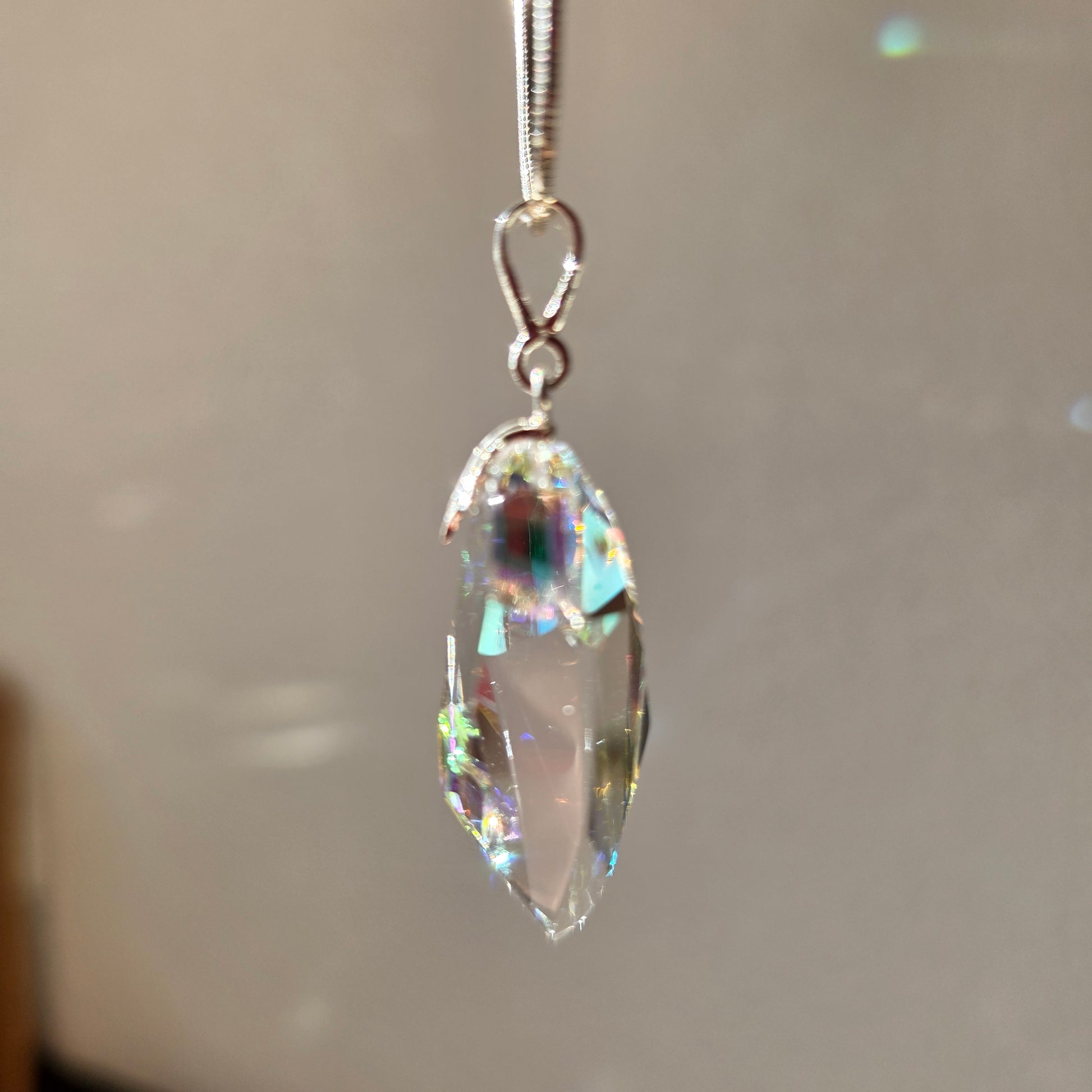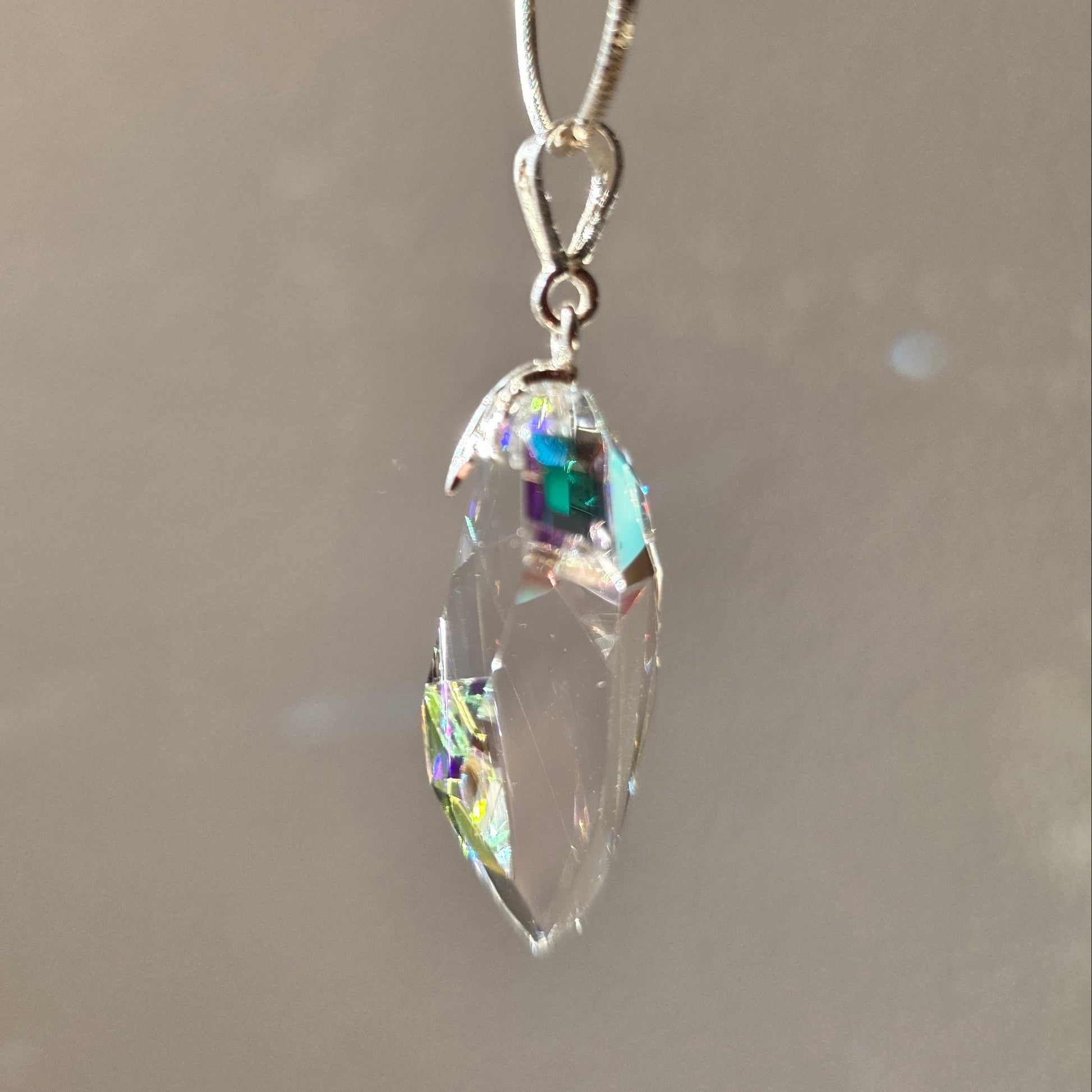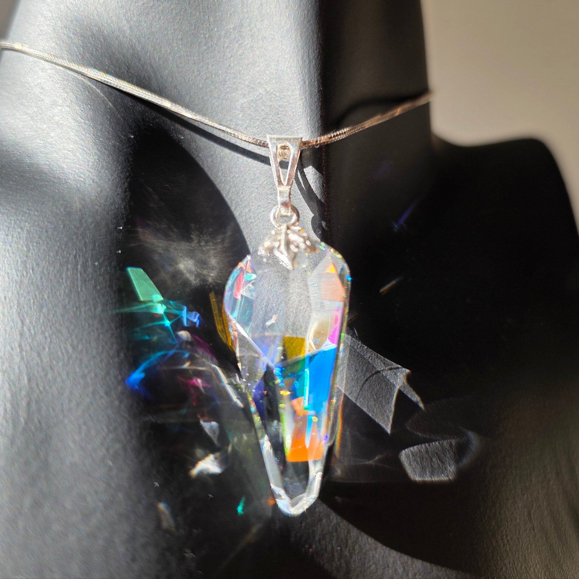 - Form: Faceted pendant with elongated geometric silhouette